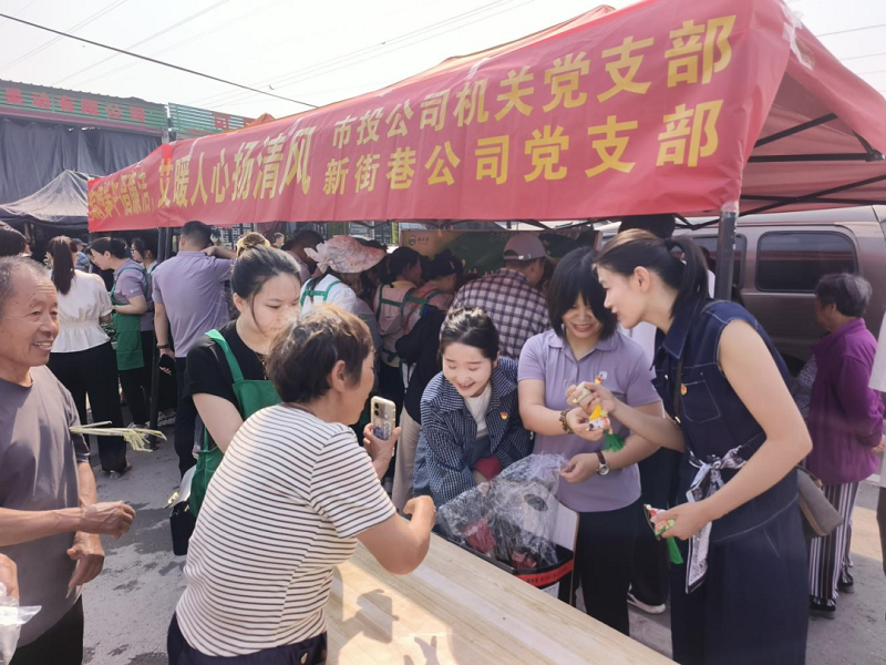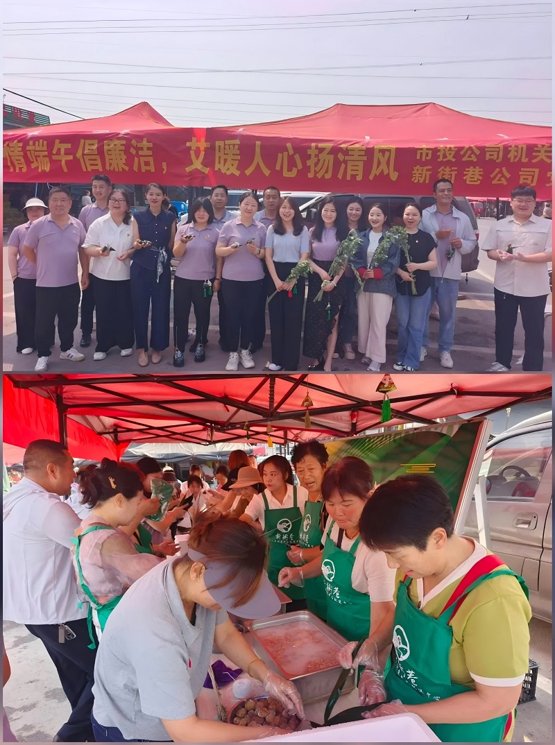 在十八里河農產品配送中心,市場管理方新街巷公司黨支部聯合市投公司機關黨支部,將端午節傳統文化與廉潔教育結合,以包粽子、廉潔知識互動、贈送廉潔香包等活動形式,增強市場商戶及群眾廉潔意識。