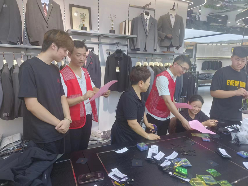 隨后,黨員們深入錢塘衣城各商戶,發放防汛知識手冊。他們結合“7·20”特大暴雨真實案例,向商戶現場講解預警信號含義、暴雨洪澇危害及自救互救方法,提醒大家務必增強汛期安全意識,提前做好防范措施。