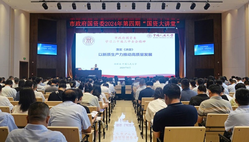 黨的二十屆三中全會擘畫了進一步全面深化改革、推進中國式現(xiàn)代化建設的新藍圖,黨中央、省委、市委要求切實抓好黨的二十屆三中全會精神的學習宣傳和貫徹落實。8月13日上午,市政府國資委在鄭州水務集團有限公司智慧水務中心舉辦2024年第四期“國資大講堂”,邀請中國人民大學黨委常委、副校長鄭新業(yè)教授圍繞《學習黨的二十屆三中全會精神 以新質(zhì)生產(chǎn)力推動高質(zhì)量發(fā)展》作專題輔導。