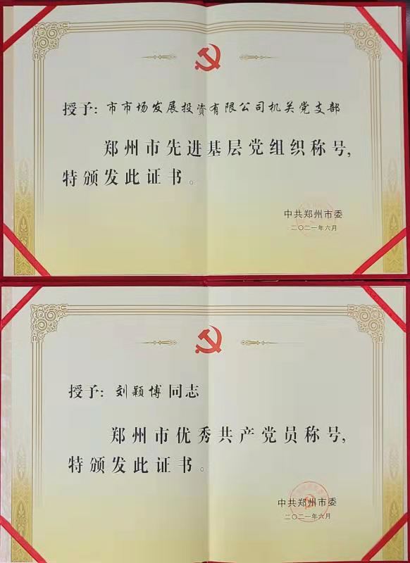 七一前夕,鄭州市召開(kāi)“兩優(yōu)一先”表彰大會(huì),隆重表彰為鄭州作出突出貢獻(xiàn)的優(yōu)秀黨員、優(yōu)秀黨務(wù)工作者和先進(jìn)基層黨組織。會(huì)上,公司機(jī)關(guān)黨支部榮獲“鄭州市先進(jìn)基層黨組織”榮譽(yù)稱號(hào),公司董事會(huì)秘書兼投資管理中心總監(jiān)、河南省暢尚農(nóng)業(yè)科技有限公司總經(jīng)理劉穎博榮獲“鄭州市優(yōu)秀共產(chǎn)黨員”榮譽(yù)稱號(hào)。